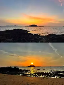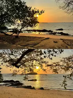 The resort's sunrise and sunset views are incredibly beautiful. Lying on the beach and watching the sunset instantly lifts your spirits. Any photo of the sunrise or sunset is a scenic masterpiece.