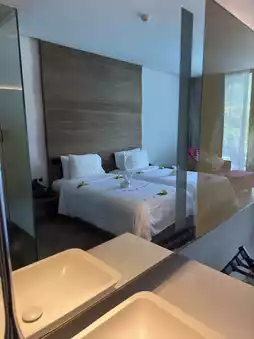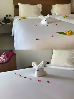 🛏Room Amenities: The resort rooms are quite spacious and clean, the mattresses are very soft and comfortable, and the quilts are skin-friendly. The resort also thoughtfully prepared towel bunnies and flower petal decorations. More importantly, right outside the room's balcony is a super beautiful swimming pool. The pool water is exceptionally clean and blue, making you want to jump in for a swim.