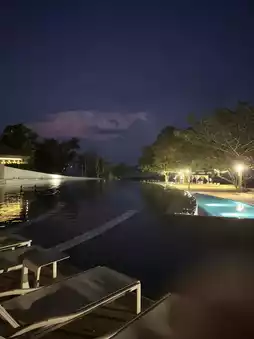 The resort also has an infinity pool. Swimming in the pool while enjoying the sunset is another delightful experience!