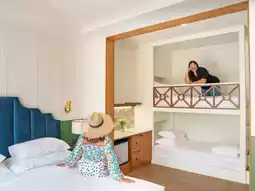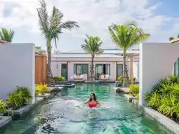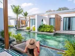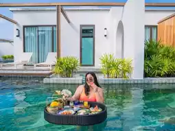 🛌 There are various room types. On this trip, Moo came with a group of friends. We stayed in the 𝗚𝗹𝗮𝗿𝗲𝗮 𝗩𝗶𝗹𝗹𝗮 𝘄𝗶𝘁𝗵 𝗟𝗮𝗴𝗼𝗼𝗻 𝗔𝗰𝗰𝗲𝘀𝘀 room. It can sleep 4 people in total. There is a large bed and a 2-story 𝗕𝘂𝗻𝗸 𝗕𝗲𝗱 bed. It is spacious, airy, and comfortable. It is well-proportioned. It has complete facilities. You can open the balcony door and play in the pool. It's very chill. In the morning, order the Floating Breakfast to float and take beautiful pictures. Share it on social media to make people jealous.