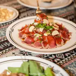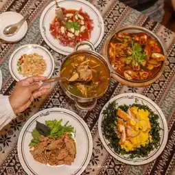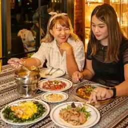 This is a famous restaurant from Bangkok that has expanded its branch to Phuket. Regular customers of the restaurant must order the hit menu, Haodong Beef (with pork). It looks like a waterfall, but it smells more like herbs. It's delicious and spicy. There's also a promotion. Order a chrysanthemum tea promotion and get a plate of Haodong 😋 If you order multiple promotions, you can get multiple plates 😁 Another great menu is the Japanese beef salad. This dish goes well with drinks. It's semi-raw beef with sauce. The first bite is amazing. Light comes out of my mouth ~