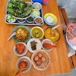 You can choose from coconut milk curry, green chicken curry, fish entrail curry, crab curry