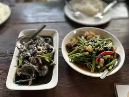 In addition to the savory dishes, they also have local desserts like O-Aew, a refreshing and sweet treat perfect for cooling down. Overall, the restaurant's atmosphere is ideal for relaxing and enjoying delicious food amidst nature.
