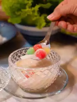 - Crispy ruby, delicious coconut milk, served in 2 cups.