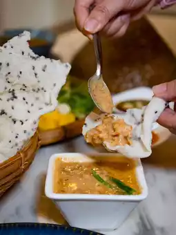 - Shrimp wrapped in sugarcane, lots of shrimp meat, served with sweet sauce, delicious.