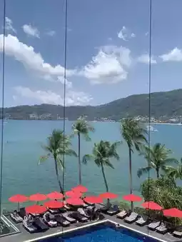 Cafe with a sea view, Patong, Phuket. Bar cafe with a sea view of Patong in the Amari Phuket Hotel. Beautiful view. Another cafe with a sea view. There are drinks and cakes. The price is like a hotel's style. 🍹 About this. But the view is beautiful.