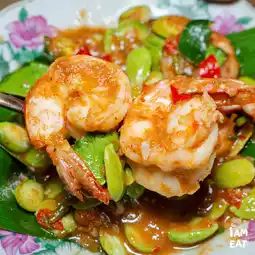 Stir-fried shrimp with stink beans is the best. Big, fresh shrimp stir-fried with stink beans in a very spicy way. This menu has a lot of rice. The shrimp are from fishermen and cooked and served right away.