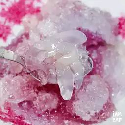 Finally, the dessert menu that the shop serves to customers for free may rotate every day. Today, it is floating palm fruit, eaten with crushed ice. In Phuket, they put a lot of shaved ice and pour it with butterfly pea flower syrup that the shop boils itself. Then grate the lime zest into it, add fragrance, and squeeze in a lime wedge. It's so delicious and refreshing. The ice is crunchy. The butterfly pea syrup is so fragrant and sweet that it goes great with the ice.