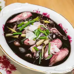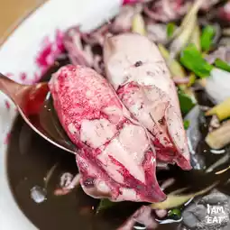 Squid Boiled in Black Soup They gave a lot of squid in a bowl. The black soup looks clear but is actually a little spicy because chili is added.