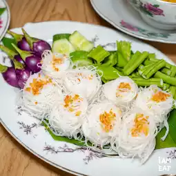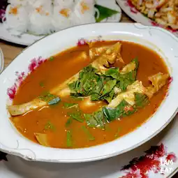 Crab meat curry set, crab curry with betel leaves, the shop squeezes fresh coconut milk for each menu, no pressing and leaving it. The taste is well-rounded, soft and smooth. The crab meat is in chunks.