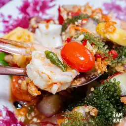 Phakakrong Salad It feels like a spicy papaya salad with pineapple, rose apple, tomato, large shrimp, thick squid pieces, and sea grapes. It's very delicious.
