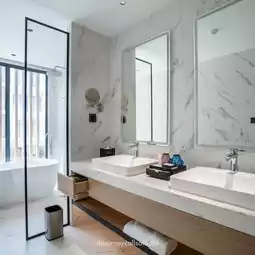 ๐ฒ ๐ฃ๐ผ๐ผ๐น ๐ฉ๐ถ๐ฒ๐ room. The room is spacious with an outdoor balcony that overlooks the swimming pool. The bathroom has separate dry and wet zones. The toilet is automatic and there is a bathtub for you to lie down and enjoy the view. The bed is very comfortable to sleep in. ๐ฅฐ