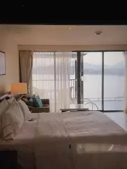 The room is the highlight. We got a room with a sea view from the bed! When I woke up in the morning, I opened the curtains and saw the soft sunlight hitting the water. It was so beautiful that I wanted to freeze time. The bed was very soft, I slept very comfortably. The room was spacious, had a sofa, a work desk, and a bathtub by the window that let in plenty of natural light, like a light Bali feel.