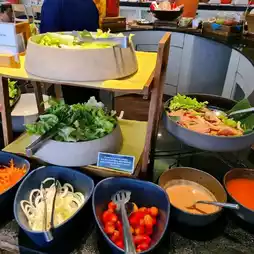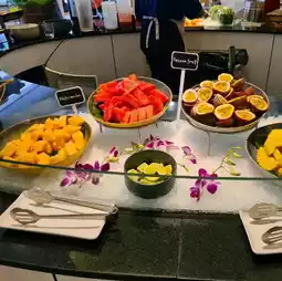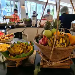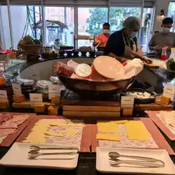 #Songkran trip The Shore restaurant is located in front of Patong Beach, on Thawiwong Road, in DoubleTree by Hilton Baan Thai Phuket Resort. It offers a full breakfast, Asian food, Western food, tea and coffee, hot and cold service. The staff are attentive and helpful. The service is very good. There are many breakfasts, cheese stations, fresh fruits, freshly squeezed fruit drinks, and various hot breads. It is a happy start to the day. #Sea trip #Phuket