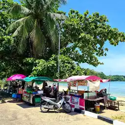 #Songkran Trip Ao Yon Beach is located in Wichit Subdistrict, Mueang Phuket District, Phuket Province. It is a small beach that is a destination for many families. When evening falls, this beach becomes a place to relax, spread a mat and eat while children can be seen running around regularly. "Ao Yon Beach" or "Ao Yon" is not far from the city. On the beach, there are shops selling food, papaya salad, grilled chicken, and a variety of cold drinks. #FamilyTrip