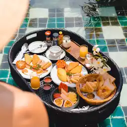 This time, I chose to stay in a ๐๐ก๐๐ง๐๐ ๐๐๐ก๐ก๐ ๐ฌ๐๐ฉ๐ ๐๐๐๐ค๐ค๐ฃ ๐ผ๐๐๐๐จ๐จ room with a large bed and a ๐ฝ๐ช๐ฃ๐ ๐ฝ๐๐ ๐ฎ floor, which can sleep up to 4 people. The room is spacious and comfortable. It is decorated with complete furniture and amenities. Let me tell you, it's so awesome. In the morning, order a ๐๐ก๐ค๐๐ฉ๐๐ฃ๐ ๐ฝ๐ง๐๐๐ ๐๐๐จ๐ฉ to float in the pool and take beautiful photos.
