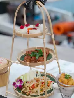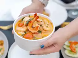 The menu here focuses on authentic Isan-style Thai food, especially the "Som Tam" menu, which is served as a set with herbal fried chicken, rice noodles and sticky rice for 199 baht. There are also single-dish meals, spaghetti, rice dishes, spicy Tom Yum Kung, and mango sticky rice desserts to choose from.