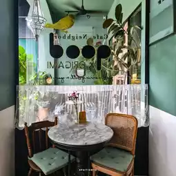 Origami Cafe Phuket Town A super chill cafe in the heart of Phuket Town. The shop is decorated in luxurious emerald green. Sit back and relax with a cup of coffee or a meal.