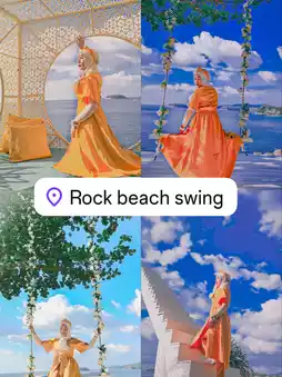 Rock Beach Swing is a popular check-in point in Phuket that is suitable for photographers and those who love the Balinese atmosphere. It is located near the Three Bays viewpoint in the Karon area. Here, there are various photo spots with beautiful Andaman Sea views.