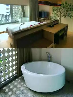 My room was impeccable clean, modern, and well- appointed, with comfortable bed, plus a balcony that features a bathtub with nice view. Air conditioning worked perfectly, which was a relief after hot days out exploring.