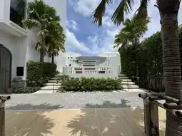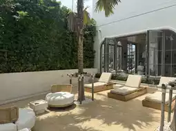 The white-cream pool daybed corner, contrasting with the palm trees and white walls, is great for taking pictures. No matter how sunny it is, you won't be afraid because there are white umbrellas to hide from the sun. There is also a cold drink service. For those who want to relax without doing anything, just chilling by the pool is awesome.