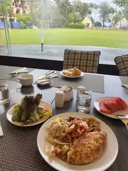 It was a satisfying experience with a spacious resort, various pools, and a rich breakfast buffet.