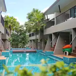 Let me introduce you to a Phuket accommodation with a chill and relaxing atmosphere that is perfect for a relaxing vacation. The highlight of this place is the pool access style rooms where you can just open the door and go swimming in the pool. Even if you stay on the 2nd floor, each room has its own private stairs to easily walk down to the pool. The pool is also very wide, so you can swim to your heart's content.