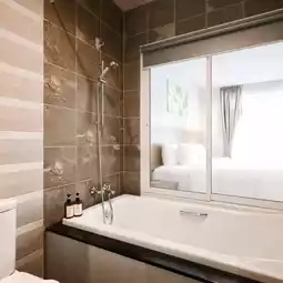 The rooms are spacious, with large, soft beds. The bathrooms have bathtubs and balconies in front of the rooms for relaxing. The amenities in the rooms are also complete.