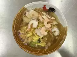👭✨ Ao Ke Shrimp Noodles: Soft noodles, fragrant shrimp soup, and lots of ingredients.