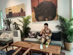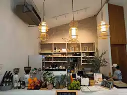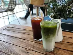 Atmosphere and Location - The Playyard Eatery Phuket will be a good cafe and restaurant by the sea. The shop is decorated in a minimalist style. The roof is similar to thatched leaves. There will be glass on all sides of the shop, allowing sunlight from outside to enter fully. When you enter the shop, there will be a receptionist. There are drinks, cakes for sale, and Western-style food. The shop has 2 zones: the inside zone has tables and chairs decorated in a homely style. The outside zone by the sea will be an outdoor table with tall trees providing shade. The drinks taste good. I ordered an Americano and a matcha latte. The aroma is well-rounded.