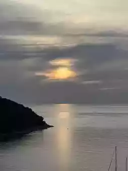 🌅 The golden color reflects on the sea surface in a very soft way.
