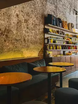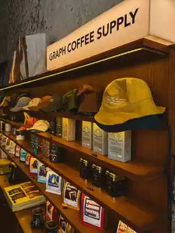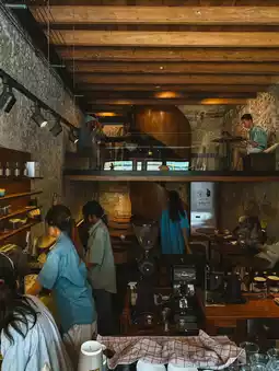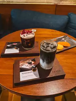 There is a bar area where you can watch the barista make coffee while you enjoy it. Or if you want to sit and work, there are comfortable tables with power outlets.