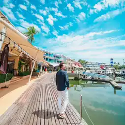 A luxurious resort with a yacht marina view, offering an international ambiance.
