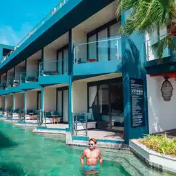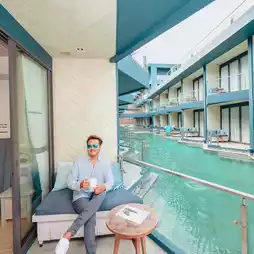 The rooms here are incredibly comfortable, with soft, cozy beds. The Pool Access rooms are particularly impressive, offering views of the pool and the sea. You can step directly into the pool from your room's balcony whenever you feel like taking a dip.