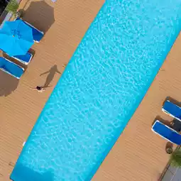 The hotel has a swimming pool on the rooftop. You can go up and sunbathe.