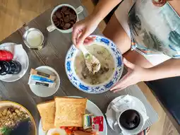 I love fried rice with Chinese sausage and pork and mushroom congee. It is delicious.