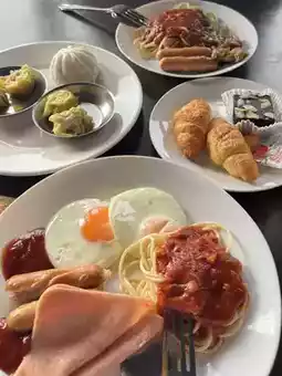 A very minimalist hotel. You may have seen it a lot on social media. It's a pity that we didn't get a room on the upper floor. Even though we requested it, we understand that we might not be able to choose. We went during the monsoon season, so the atmosphere wasn't good. But the view was already beautiful. The breakfast was delicious. There wasn't much, but it was delicious.