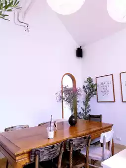 This charming white two-story cafe offers plenty of photo spots. It serves a variety of drinks, cakes, and food, making it a perfect spot to relax and enjoy.