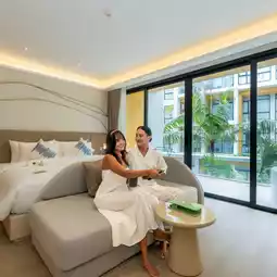 Here is another beautiful new resort in Phuket. This one is only 20 minutes from the airport and just across the street from Nai Thon Beach. This time we came to relax here for 3 days and 2 nights. There are many places to visit around the area. It is also very convenient because there are many shops and restaurants near the resort.
