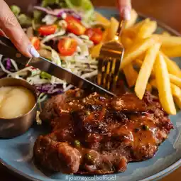 A steakhouse with a great atmosphere, open until midnight! 🍻 During the day, relax with the salad bar buffet, enjoy until the evening. At night, enjoy a full dinner + great live music, enjoy without realizing it. 🎶