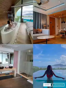 Today, I would like to recommend an accommodation near Patong. We booked a Premier Panorama Pool Villa with breakfast (you can inform the staff for a Floating Breakfast and they will deliver it to your room in the morning). 🍽️ I have to say that when you get to the hotel, everything is great. The staff are lovely. The atmosphere is perfect for healing your mind and soul. It heals your heart a lot and you get a lot of pictures as well. ❤️🔥📍After checking in, the staff took us to our room. As soon as we opened the door, the room was very spacious and well-proportioned. The pool is very large and the sea view is worth a million. ✨And I remembered that there was a place to take pictures with the little one not far away, so I quickly went out to find something to eat and went to see the little one. When I arrived at the event, I was happy to take pictures. I looked for the big one. When it got close, I ran away crying and didn't want to take a picture anymore. I was so scared. 😭 After I calmed down for a while, the staff took me up on its back. I met a baby elephant who teased me. It was very playful. After taking pictures, it refused to go back because it fell off the baby elephant. 😂 Before going back, I stopped to take pictures in front of the beach. Before I could take the picture, the clouds started to darken and it started to rain again. This is what an unplanned trip would look like, everyone. 🥲