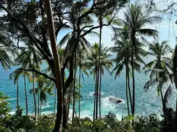 I came here based on reviews, and it was truly amazing! The view is absolutely stunning, featuring a sunset, palm trees, and rocky formations all blending together beautifully. I highly recommend coming here by motorbike for convenience. You can park by the roadside and walk towards the large rocks. Head down to the lower area for the best photo spots.