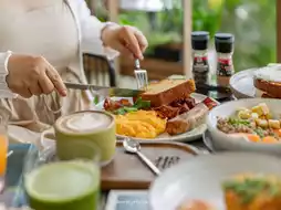 The fusion breakfast menu here is good for the heart with Western-style breakfast, including fried eggs, bacon, ham, sausage, toast, served in a full dish on one plate.