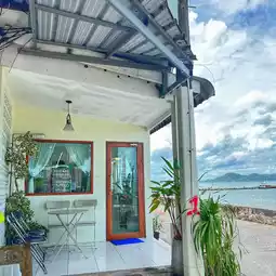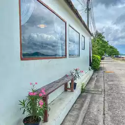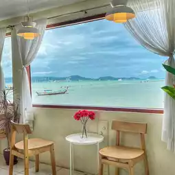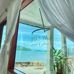 Lay Cafe Phuket is a minimalist seaside cafe. The drinks are delicious, the desserts are smooth, and the prices are friendly. The highlight is the sea view in the middle of the glass frame, which makes for a really beautiful photo. Although the space in the shop is limited, there are still seats outside and convenient parking. For those who love taking photos of cafes and want to sit and sip coffee while enjoying the view, you must stop by Lay cafe Phuket.