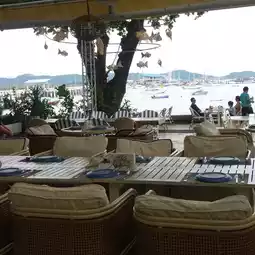The shop is located on the shores of Chalong Bay. There are both indoor and outdoor seating areas with sea breezes. The atmosphere is shady with large trees. There is a wide, airy area, convenient for families or groups of friends. There is convenient parking. There is live music in some evenings.