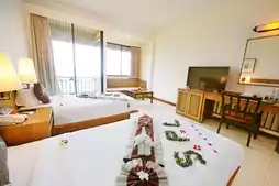📍🏖️ The resort's distance from the city's hustle and bustle makes it ideal for travelers looking to escape the crowds. The decor has a nostalgic charm, with a simple and rustic overall style. Upon arrival, you'll be greeted by rows of traditional Thai decorations. The friendly front desk staff ensures a warm welcome, making you feel right at home 🎉. The rooms are modestly furnished but well-equipped, featuring balconies with stunning sea views. The two swimming pools are a highlight, blending seamlessly with the ocean horizon—perfect for Instagram-worthy shots 📸!