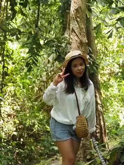 To get there, you’ll need to hike down a steep 200–300 meter trail through trees and rocks. Wear proper shoes because it can be a bit slippery. But once you make it to the beach, you’ll be rewarded with soft white sand, clear turquoise water, and a super calm sea — no big waves, which makes it perfect for snorkeling or just floating around peacefully.