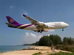 To view airplanes landing in Phuket, head to the western end of Phuket International Airport's runway, specifically the southern end of Mai Khao Beach. This location offers a prime spot for plane spotting, with aircraft often landing directly overhead, especially during the high season (December to April) when the wind blows from the northeast.