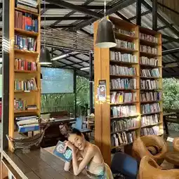 Booktree Library & Café Phuket is a wooden cottage-style café in the middle of a garden that gives a warm and peaceful feel. There is a small library with hammocks, ping pong tables, and delicious homemade drinks and snacks. "Really suitable for relaxation" for book lovers, people who like to chill, or those who want to think of new projects on a rainy or sunny day. 📚 Small library + bookstore ❤️ In addition to being a bookstore that holds many writers' works, both new and used ❤️ There are also books for rent (rent for 30 days) ☕ Menu & drinks 🤍 Serving both coffee and Thai food 📍 Location: • Location: 16/3 Moo 2, Tha Ruea-Muang Mai Road, Pa Klok Subdistrict, Thalang District, Phuket Province • Opening hours: Monday-Wednesday & Friday-Sunday 08:00-17:00 (Closed every Thursday)