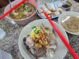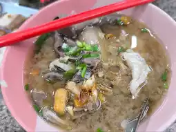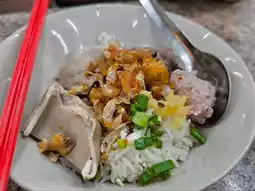 Atmosphere/Location - A famous dry rice porridge shop. Parking may be on the side of the road. It's good that it's opposite the Chao Ong Shrine or a little further. The shop is right at the intersection.